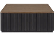 - Materials and Finish: The Channel Cocktail Table is crafted from a combination of solid wood and MDF, featuring elm veneers that provide a sophisticated look and enhance its durability.