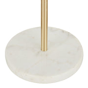 - Sleek and Functional Design: The Chloe Shelf Floor Lamp by LumiSource features a modern design with a gold neck, round glass shelf, marble base, and white linen shade, perfect for adding a stylish touch to any space.