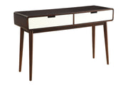 - Elegant Design: The Christa White & Espresso Finish Sofa Table features a rectangular leg design with two storage drawers, seamlessly combining style and functionality for a sophisticated look.