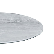- Introducing the latest addition to our Circa Collection, the sleek and modern end table that's perfect for any contemporary living space! Crafted with a sturdy, circular base and a central pole that connects to the tabletop, this end table is a stylish and functional addition to your home decor. The glass tabletop has a unique 3D printed marble texture, adding a touch of elegance and sophistication to any room. Whether you're enjoying a cup of coffee, working from home, or simply relaxing after a long day, this end table is perfect for your needs. Its compact design makes it ideal for small spaces, while its stylish design complements any interior style. Upgrade your home decor with our Circa end table and experience the perfect blend of style and function.