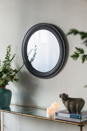 Circle Wall Mirror With Wooden Frame, Antique Classic Accent Mirror, For Living Room - Black