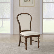 - Set of two dining side chairs crafted from durable rubberwood with a rich brown finish for enduring quality