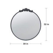 Classic Design Mirror With Round Shape And Baroque Inspired Frame For Bathroom, Entryway Console Lean Against Wall - Black