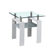 Clear Glass Top Side Table, End Table, Modern Design For Home - White