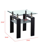 Clear Glass Top Side Table, End Table, Modern Design For Home - Black