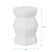 Contemporary Ceramic Drum Stool Indoor / Outdoor Side Table Glazed Accent Garden Stool - White