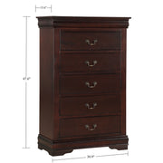 Contemporary Louis Philip Cherry Chest With Five Drawers Solid Wood Ample Storage - Cherry