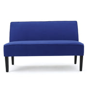 Contemporary Loveseat With Upholstered Fabric And Birch Wood Legs - Navy Blue