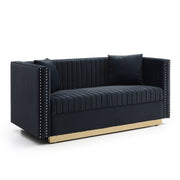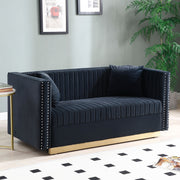 Contemporary Vertical Channel Tufted Sofa Loveseat Modern Upholstered Couch For Living Room With 2 Pillows - Black