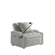 3 In 1 Convertible Sleeper Chair Sofa Bed, Adjustable Pull Out With Multi Pockets Velvet - Gray