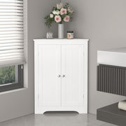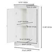 Corner Cabinet With 2 Doors And Adjustable Shelves, Freestanding Narrow Storage Organizer For Bathroom - White