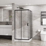 Corner Shower Enclosure With Sliding Door - Matte Black