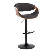 Curvo - Mid-Century Modern Adjustable Barstool With Swivel With Rounded T Footrest (Set of 2) - Black / Walnut / Charcoal