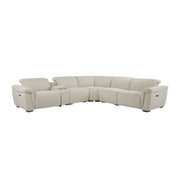 Dayana - Boucle Power Recliner Sectional Sofa For 5 People With Cupholder Console Adjustable Headrest - Beige