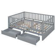 Full Size Daybed With Fence Guardrails And 2 Drawers - Gray