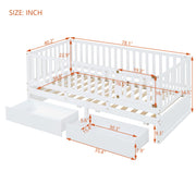 Full Size Daybed With Fence Guardrails And 2 Drawers, Convertible Floor Bed & Daybed - White