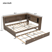 Full Size Daybed With Storage Shelves, LED, USB, And Trundle - Wood