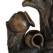 Decorative 4 Tier Broken Pot Water Fountain With LED Light - Brown