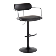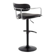 Demi - Contemporary Adjustable Height Barstool With Swivel With Rounded T Footrest (Set of 2) - Black / Chrome / Black