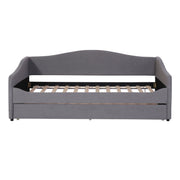 Embossed with light stripes on each side, this daybed brings an artistic atmosphere to your home. The design is fun and inviting, creating a comfortable space for relaxation. The modern profile with a track design acts as an eye-catching focal point. This bed includes a trundle, perfect for small apartments or those who love sleepovers. Simply roll out the trundle when needed and roll it back in when not in use. This daybed is both a beautiful and practical addition to your bedroom.