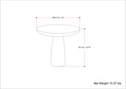 - Features a sleek design with a circular tabletop and flared base.