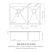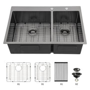Double Bowl Kitchen Sink 16 Gauge 33" X 22" With 2 10" Deep Basins - Gunmetal Black
