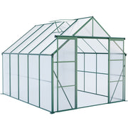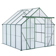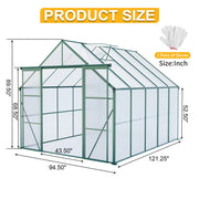 Double Door Polycarbonate Greenhouse Raised Base And Anchor Aluminum Heavy Duty Walk In Greenhouses For Outdoor Backyard In All Season - Green