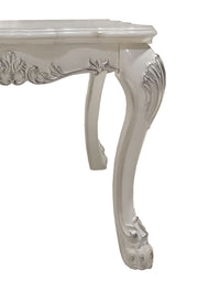 - Elegant Design: The square end table features a traditional style with a wooden scalloped top and apron, adorned with raised floral motifs, and oversized claw legs, providing a vintage hand-brush finish that enhances any room's decor.