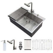 Premium 30" Drop In Kitchen Sink With Pull Down Faucet And Soap Dispenser, Stainless Steel - Brushed Nickel