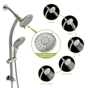 Dual Shower Head With Adjustable Slide Bar And Multi Function Settings - Brushed Nickel
