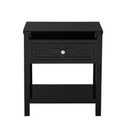 Dylan - Wooden End Side Table Nightstand With Glass Top And Drawer - Black
