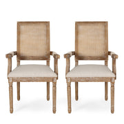 Upholstered Dining Chair With Cane Backrest (Set of 2) - Brown