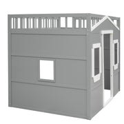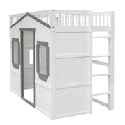 Twin Size House Loft Bed With Ladder - Gray / White