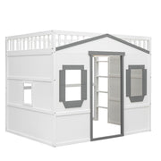 Full Size House Loft Bed With Ladder - Gray / White