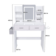 Elegant LED Mirror Vanity Dressing Table With Adjustable Lights, Drawers & Storage - White