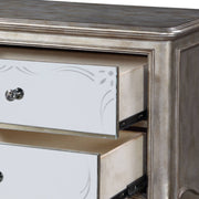 - Elegant Design: This antique champagne nightstand features glamorous mirrored fronts and a sophisticated design, exuding luxury and elegance. Its vintage-inspired charm is highlighted by sparkling crystal-like pull-knob hardware.