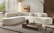 Extra Large Sectional Sofa Soft Fabric Upholstery, Elegant Curved Design With 3 Round Cushions, High - Resilience Foam For Ultimate Comfort - Beige