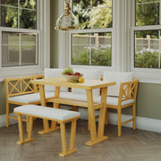 Farmhouse Solid Wood Dining Nook Set For 6, Space Saving High Top Corner Table With Bench & Chairs - Natural / White