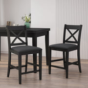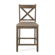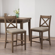 Farmhouse Style Upholstered Wood Counter Stools (Set of 2) With X Back Frame - Brown