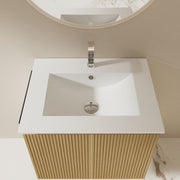 - Wall-Mounted Vanity: floating cabinet with integrated sink and included towel rack for space-saving bathroom organization