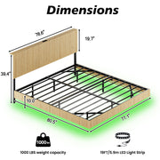 Queen Floating Bedstead With Charging Station And LED Lights, Wavy Headboard - Oak