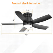 Flush Mount Ceiling Fan With LED Light 22W And Remote Control Blades For Indoor Use - Black