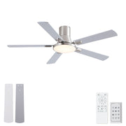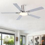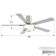 Flush Mount Ceiling Fans With LED Light 24W And Remote Control 5 Blades For Living Room - Brushed Nickel