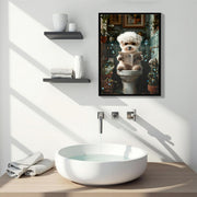 Framed Bathroom Decor, Cute Puppy Wall Art In Picture Frame, 3D Canvas Print - Indigo / White