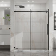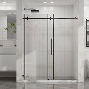 Frameless Sliding Shower Door 60" X 72", Clear Tempered Glass With Easy Clean Coating Hardware - Matte Black