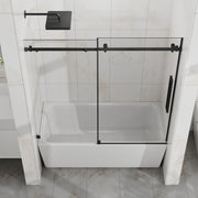 Frameless Tub Sliding Shower Door With Easy Clean Coating, 6mm Tempered Glass, 60" X 58" - Matte Black
