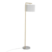 - Chic Design: The Fran Floor Lamp by LumiSource combines a sleek gold metal stand with a white marble base and a white linen shade, adding a touch of simple chic and sophistication to any room.