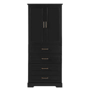 Bathroom Cabinet With 3 Drawers, Adjustable Shelf, Panels, Steel Handles, Soft Close Doors - Black