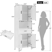 Tall Bathroom Cabinet With Drawer And Adjustable Shelves - White