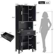 Freestanding Tall Bathroom Cabinet With Soft Close Doors And Adjustable Shelves - Black